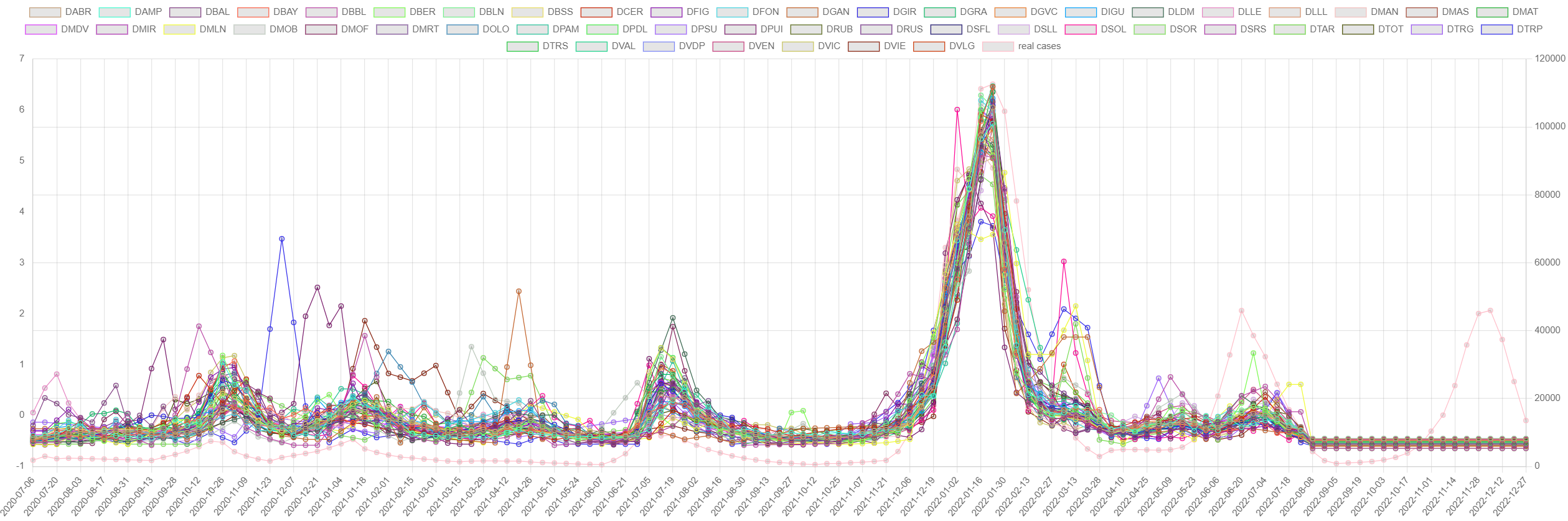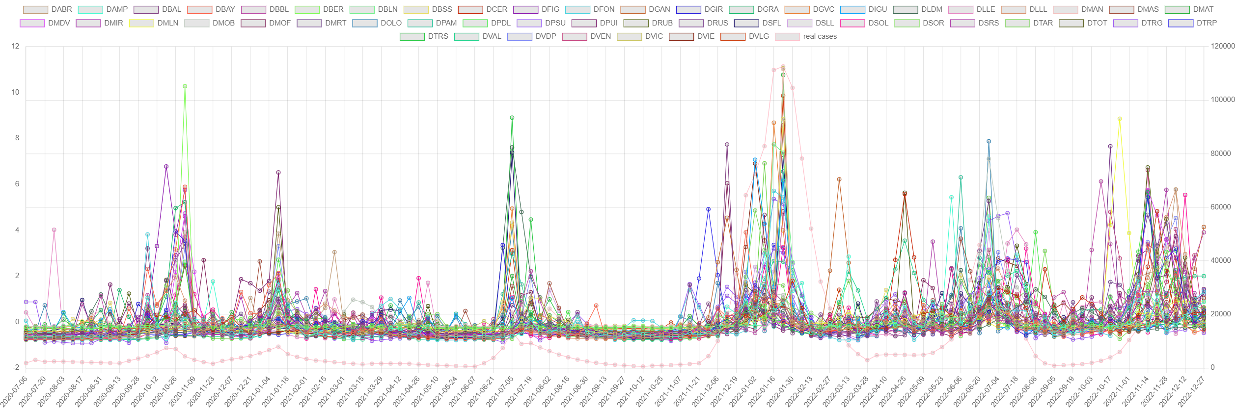 A second input dataset has been prepared: daily reported clinical cases for all municipalites served by each WWTP, weighted by the percentage of inhabitants connected to each WWTP. This data was extracted from the official API of the Information Systems of the Department of Health and the Catalan Health Service (https://analisi.transparenciacatalunya.cat/resource/jj6z-iyrp.json).